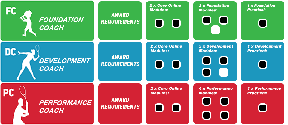 The framework consists of online learning (which coaches can do at their own pace) and practical modules. The practical modules enable coaches to contextualise the online learning and put it into practice on the court. A prerequisite to attending a practical course is completing the required online modules outlined below. These modules are delivered by approved Squash New Zealand Coach Developers.